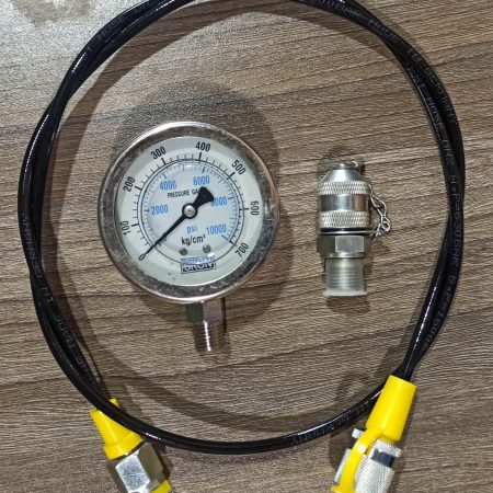 Đầu nối Testpoint này thực chất là một chiếc van 1 chiều thủy lực, dầu chỉ đi theo chiều từ đầu ren M16 sang đầu ren G1/4″, nên nếu chỉ lắp đầu nối này vào hệ thống sẽ không bị rò dầu tại đầu nối ( vì khi đó dầu đi từ đầu ren G1/4″ sang đầu ren M16). Nhưng khi kết nối vào sợi dây Testpoint, cây kim ở đầu kết nối trên sợi dây sẽ mở van 1 chiều này ra, làm cho dầu có thể đi từ hệ thống, qua van 1 chiều, qua dây và lên đồng hồ. - Đồng hồ đo áp thủy lực